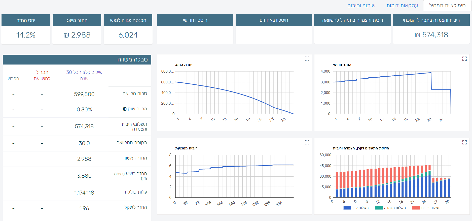התוכנית מפותחת באופן מותאם אישית לכל לקוח בתוכנת ניהול כלכלי מהמתקדמות שקיימות ומציגה פאנל לקוחות שמאפשר לכם לעקוב בכל שלב אחר התהליך!